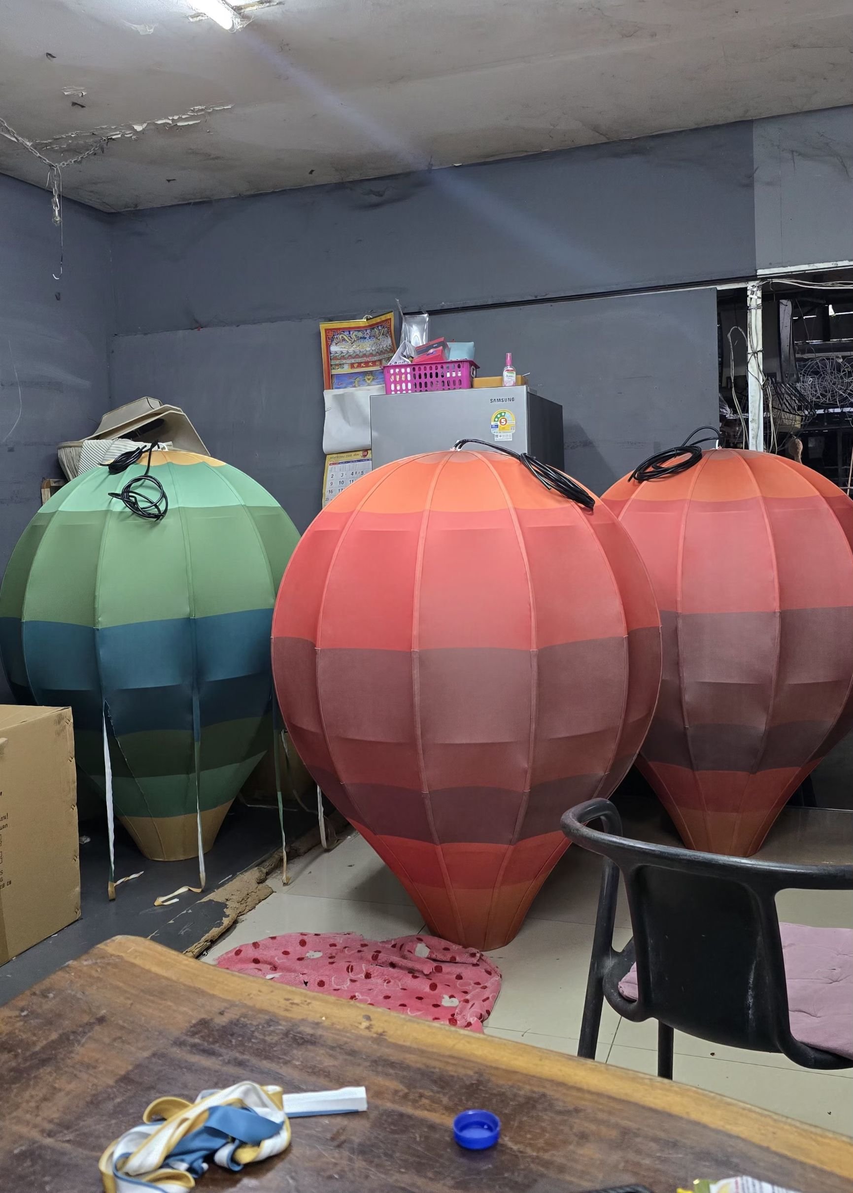 เราไม่ได้ผลิตแค่โคมไฟทั่วไป แต่สามารถผลิตงานตกแต่งขนาดใหญ่ เช่น โคมไฟบอลลูนยักษ์, โคมไฟธีมพิเศษ และงานดีไซน์เฉพาะแบรนด์